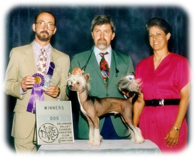 Ch. Sol-Orr's Nordinary Romance"Romeo"Pictured winning Winners Dog at the Deleware Valley Chinese Crested Club's Specialty