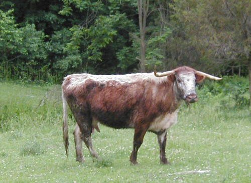 English Longhorn CattleThe English Longhorn is a beautiful ancient breed. Once a rare breed in England, the Longhorn bordered extinction in the middle years of this century. Although still rather rare the numbers in England have increased. As of now there are only three known cows on this continent. We are very fortunate to have all three cows residing here at Bayshore Kennel and Farms. The English Longhorn Society of America is underway in it's development and will be dedicated to preserving this wonderful docile meat breed in this country.